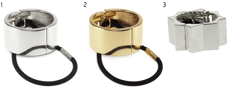 cabelo reinventados em forma de argolas metálicas e permitem dar ao, tão prático, rabo-de-cavalo um toque de sofisticação.